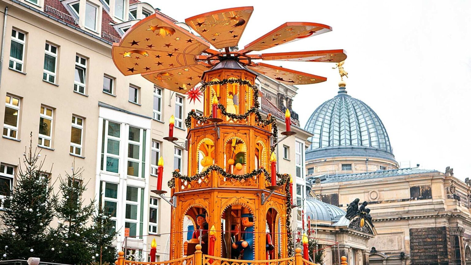 Im Herzen der Dresdner Altstadt findet in der Adventszeit der traditionsreiche Striezelmarkt statt. Dieser Weihnachtsmarkt, dessen Ursprünge bis ins Jahr 1434 zurückreichen, verbindet lebendiges Brauchtum mit festlicher Atmosphäre. Zwischen liebevoll dekorierten Buden und dem Duft von gebrannten Mandeln erleben Besucher einen der ältesten Weihnachtsmärkte Deutschlands. Als Wahrzeichen erhebt sich die mehrstöckige Holzpyramide über dem Altmarkt und verleiht dem Striezelmarkt sein besonderes Flair.